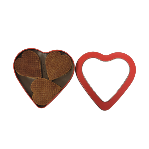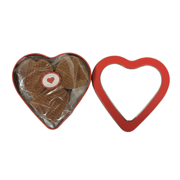 Classic Rood Hartblik met Venster gevuld met 6 hart stroopwafels