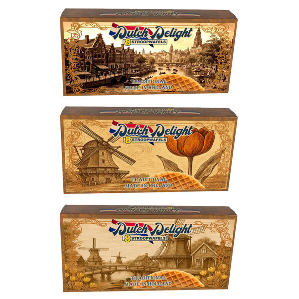 Vintage Stroopwafels (afbeeldingen met o.a molen aan het water, oud Hollandse-zeilboot, pakhuizen)